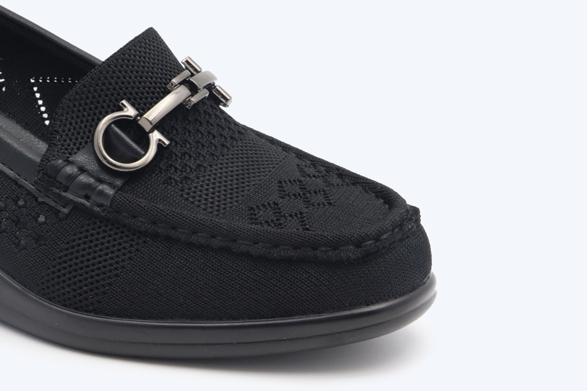 Black Weave Buckle Flat